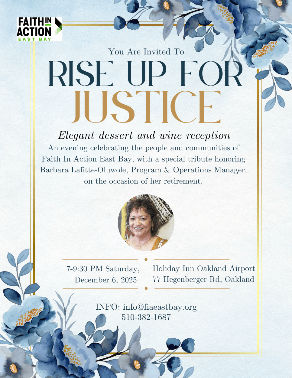 Location: New Hope MBC, 892 36th Street, Oakland Night walks: 6pm: Gathering for pre-walk/corners process 6:30pm: walk or stand on corners 7:30pm: returned back to starting location or completed from the corners By 7:45pm, walk process completed For more information, please contact alba@fiaeastbay.org |